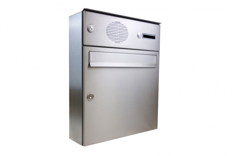 1x poštovní schránka F-046 k zazdění do sloupku + čelní deska s 1x zvonkem a HM TESLA - NEREZ / šedá