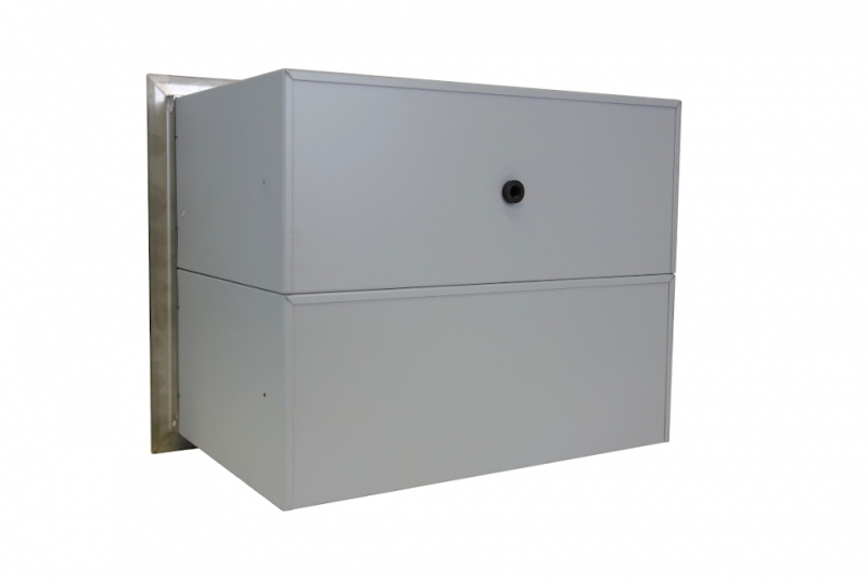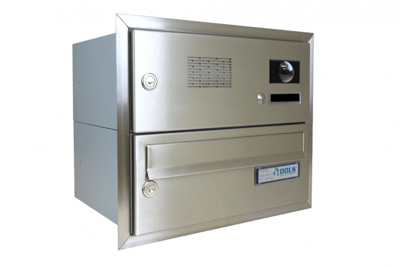 • Čelní dvířka včetně sklapky a orámování - broušený NEREZ (brus 240), tělo schránky (Zn plech) lakováno RAL šedou