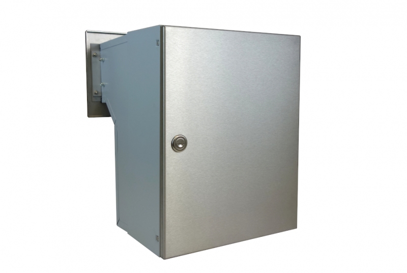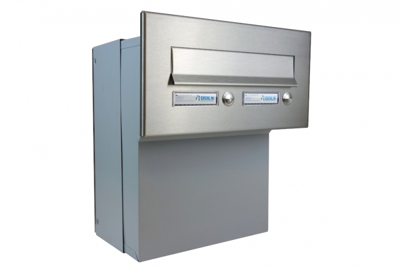 • 1x F-046 (260x110/330x180-270), schránka stojatá s nastavitelnou hloubkou od 180 mm (předsazená dvířka) do 270 mm, čelní NEREZ deska ČD-36 s 2x zvonkovým tlačítkem (uchycení na 4 šrouby)