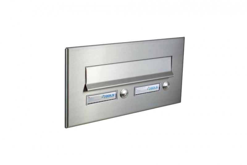 • Čelní deska se sklapkou v provedení broušený NEREZ (brus 240), osazená 2x plastovou jmenovkou s antivandal nerez zvonkovým tlačítkem